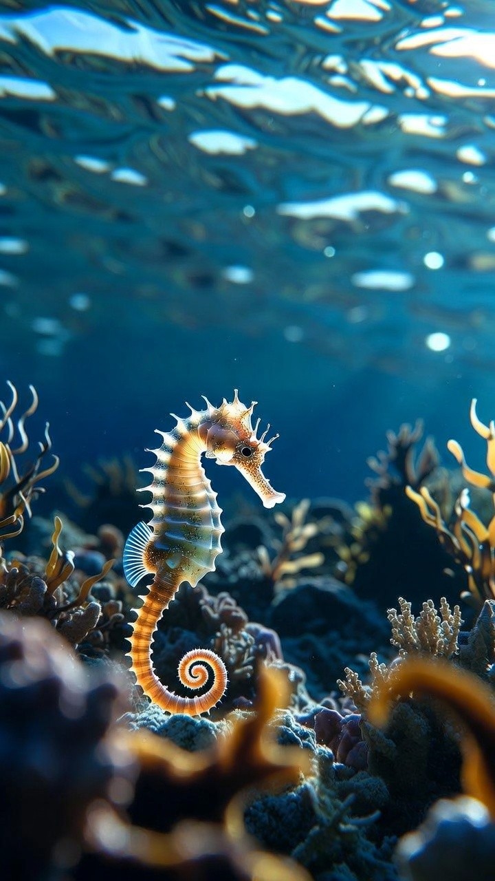 Oceanic Elegance: The Sunlit Seahorse